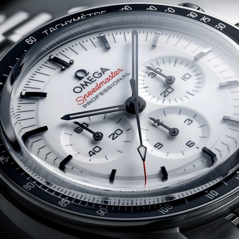 The white-dial Moonwatch of 2024 offered perhaps the clearest sign of change. It was more than a reversal of colour; it introduced a new, more luxurious dial construction. The white lacquer dial is carefully polished to create a multi-level effect and is complemented by applied metal markers. The result closely resembles the white Canopus Gold Moonwatch, but here the upgrades come in a steel package. By comparison, the base model still has a matte black dial with painted markers and none of the three-dimensional, upscale details.